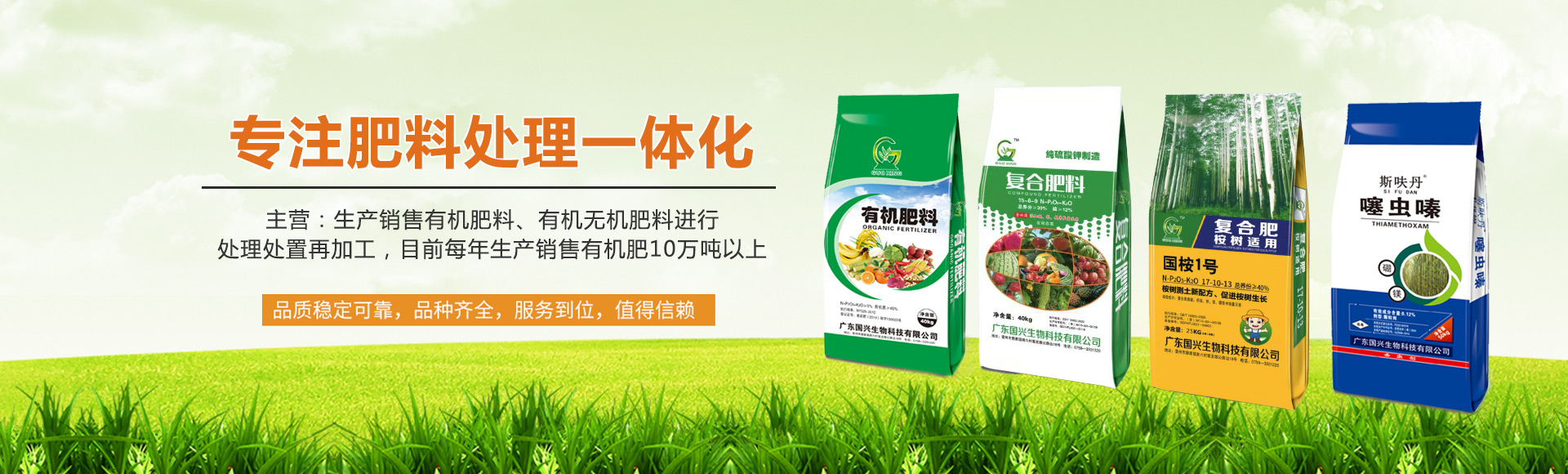 广东国兴生物科技有限公司是一家致力于新型有机肥料和无机肥料研发、生产和销售为一体的高新技术企业。公司位于中国大陆南端——湛江市雷州。是广东、广西和海南的重要接合点,投资环境得天独厚,水路交通便捷,地域优势明显。